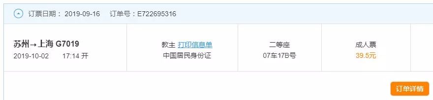 网购票在订单上还会有这样一个链接打印信息单。窗口或新型售票机会提供一张购物小票一样的购票信息单印有座位信息。