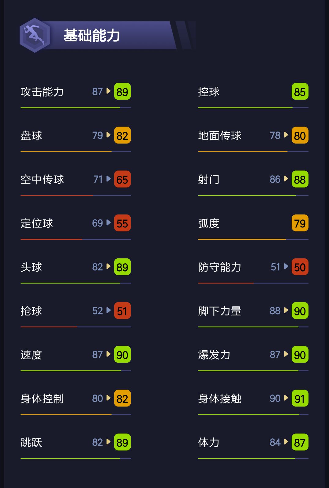 你很难想象这是一个铜球的能力值面板,佩莱格里的能力与卢卡库十分相似,只是手感要略微好于卢卡库,下赛季的卢卡库会被削弱,而佩莱格里预期加强。排除培养难度问题,歪哥认为佩莱格里有能力占据替补席的一个名额。