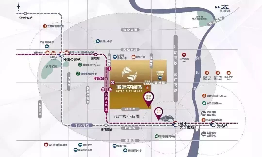 绿地·长沙城际空间站公寓,位于武广新城核心地段,地铁4号线上盖,距离2号线杜花路站约500米,于高铁南站仅一街之隔,全年3亿+流量入口,而且在项目曲塘路与花侯路设有两个公交站台多达八趟公交,无论乘车去往长沙东、西、南、北各个方位均十分便捷。