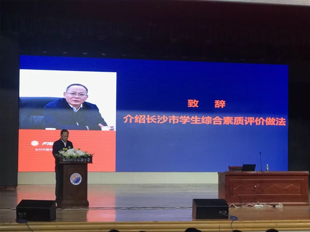 会议由长沙市教育局副局长缪雅琴主持,局党委书记、局长卢鸿鸣发表致辞。他首先对来参加论坛的领导老师表示热烈欢迎和亲切问候,对一直以来关心长沙教育的各界同仁表示诚挚的谢意。他指出,长沙市综合素质评价改革在教育部的大力支持、长沙市政府的强力推动和全体长沙教育人的努力坚持下,在探索、研究和实践中稳步推进,并以综合素质评价为突破口,推动了长沙市教育事业的发展。市教育局探索学业成绩加综合素质评价,让招生录取督促育人导向,实行共性指标加个性指标,让评价内容突出育人目标;采用等级评定加综合评语,让评价标准多维、客观;通过写实记录加成果遴选,让评价程序关注成长过程;实施线上评价加线下评价,让评价制度常态,立体多元,推进1+N综合改革,综合施策,共促素质提升;通过综合素质评价的全面推动,有效促进了我市学生综合素质全面提质,办学特色不断彰显,教育改革不断深入,教育生态不断优化。致辞中,卢局长就本次论坛的目的、意义作了重要说明。论坛上,教育部基础教育课程教材发展中心副主任张国华,山东省昌乐二中副校长滕玉香,上海市教委基教处处长杨振峰,我校徐铁刚校长,北京市海淀区教育科学硏究院教育质量监测与评价中心博士陈朝晖先后作了主题发言。