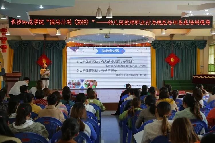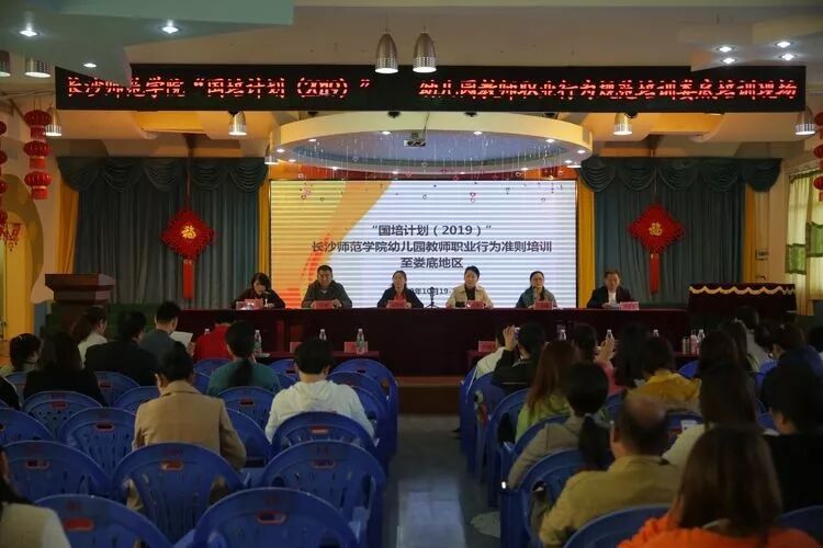 2019年10月19日—20日,长沙师范学院“国培计划(2019)”—幼儿园教师职业行为规范娄底培训活动在娄底市直机关幼儿园顺利开展实施,本次培训由湖南省国培办主办,娄底市教育局承办,娄底市直机关幼儿园协办。本次送培活动得到了娄底市教育局的高度重视与大力支持,市教育局副局长高静亲临活动现场并作重要讲话,娄底市直机关幼儿园园长罗云娥致欢迎辞,全市300余名幼儿园园长、骨干教师一同参与了本次送培活动。