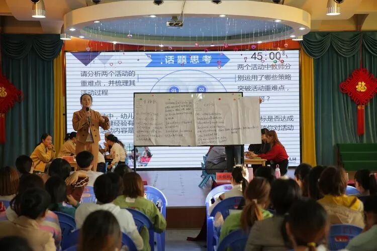 两节精彩的展示课结束后,长沙师范附属第二幼儿园田源老师组织大家以小组讨论的形式对活动进行点评、分析。