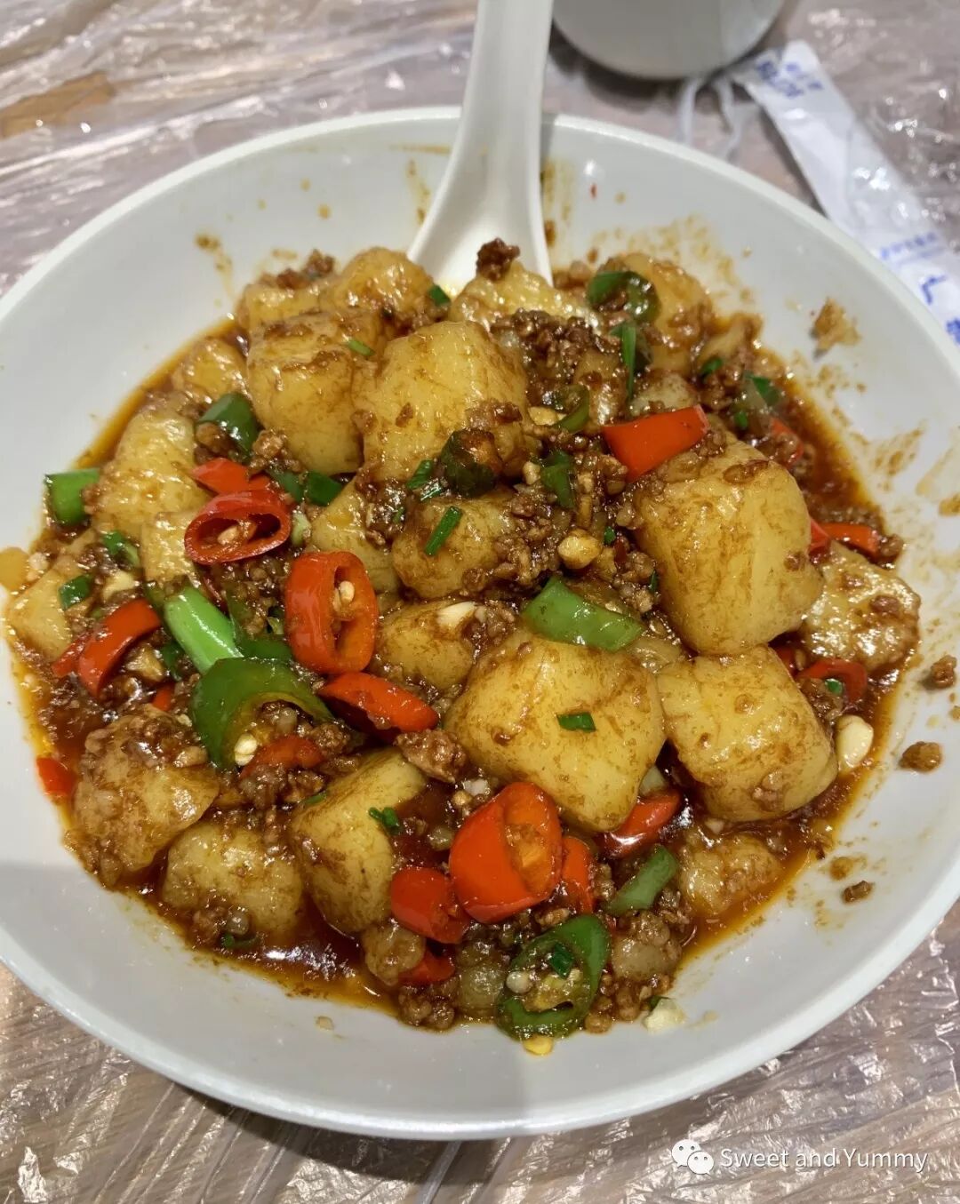关于口味,鸭掌筋,我的爱!鸭掌筋脆脆的又贼有嚼劲,一大半都是我吃的,算中辣以上,不吃辣的慎点;红烧米豆腐,外皮像凉粉,芯子又很实在,入口是辣的,吃到里面又没啥味道了,不太ok;腊味饭,一整个电饭煲端上来的,解辣神器。