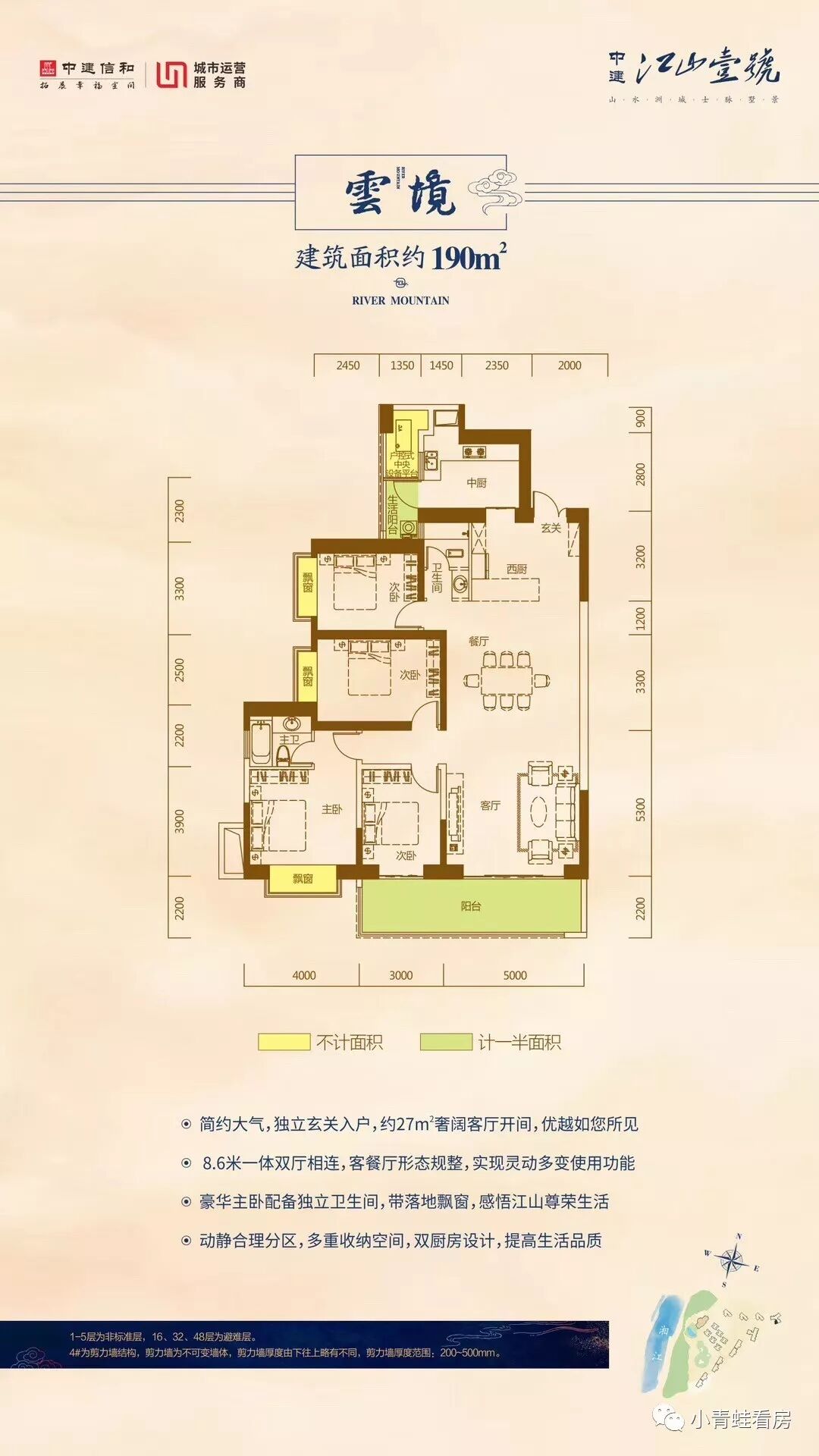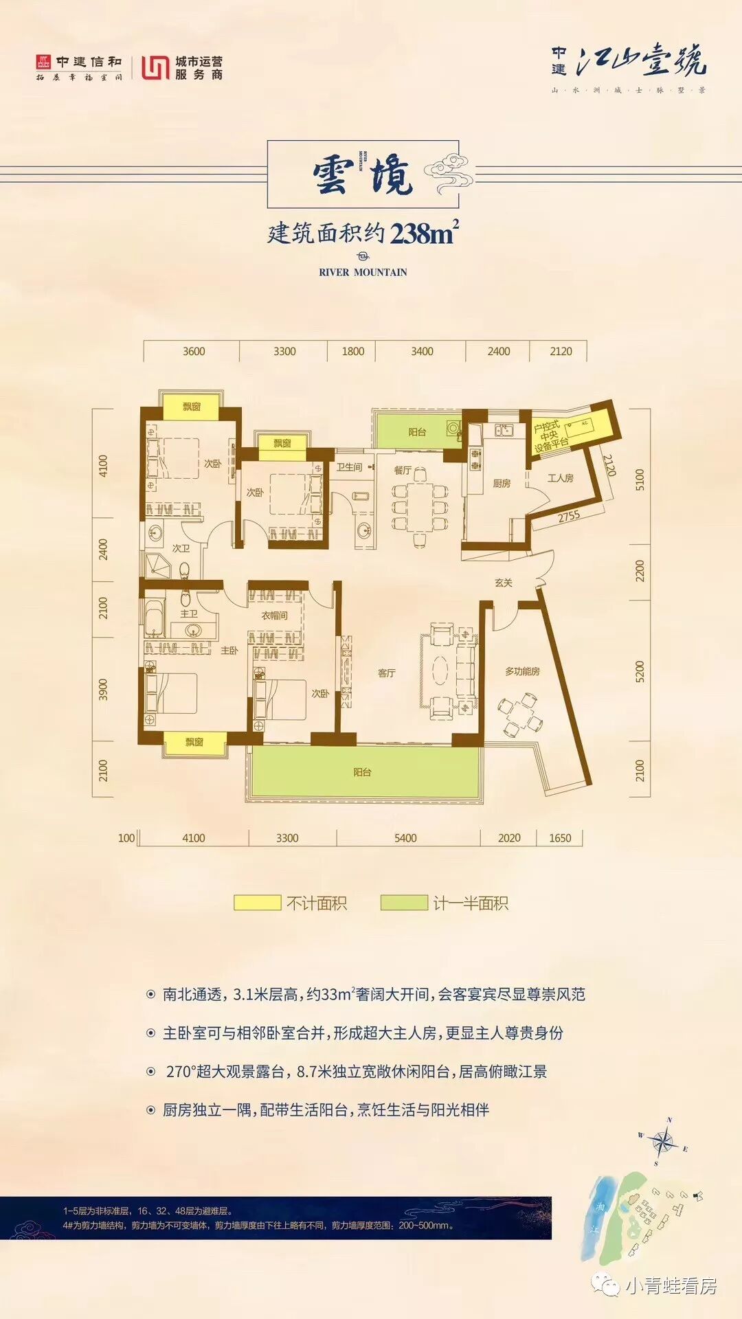 据了解,4#是江山壹号压轴之作,共207套,毛坯均价16000元/平,整栋分别有238㎡、190㎡四房两厅2种产品。