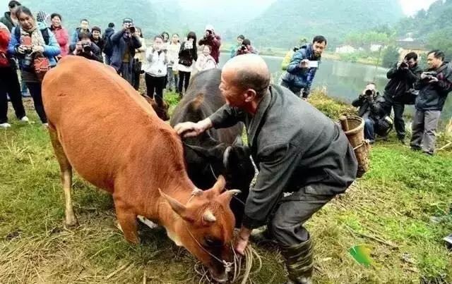 黄牛向行人跪拜