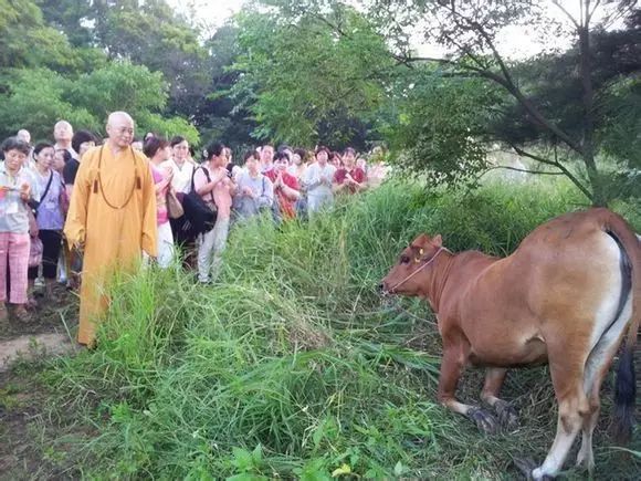 2013年7月22日海涛法师在台湾金门岛救了二十头黄牛,其中一头已怀孕的母牛居然跪下来向师父谢恩,师父离开了,母牛马上起身。当天晚上师父在做大蒙山,大众听到一头母牛在哭。师父说救母牛没救到母牛的小孩,所以母牛在哭。师父请大家再出资救小牛,母牛就不再哭了。师父也呼唤大众发慈悲心,别再吃牛肉了。动物和人一样也有感恩的心,面对宰杀同样也会恐惧害怕流泪,如果你感到同情怜悯它们,那么请千万别再吃肉了。