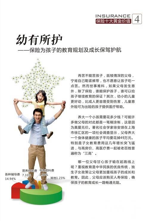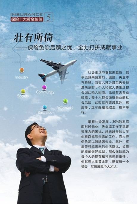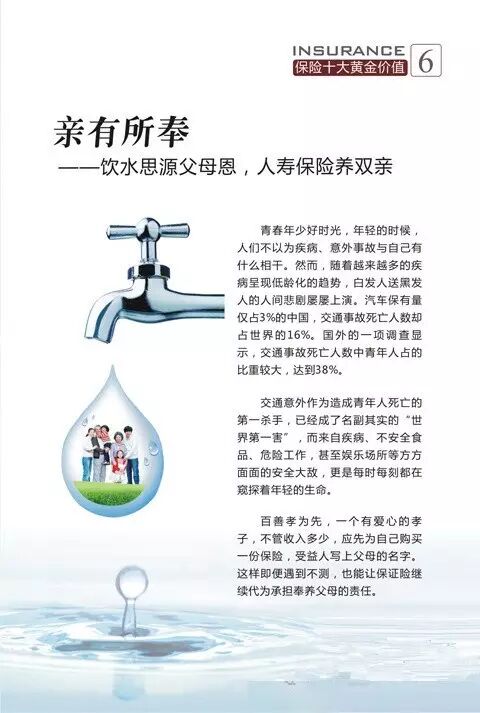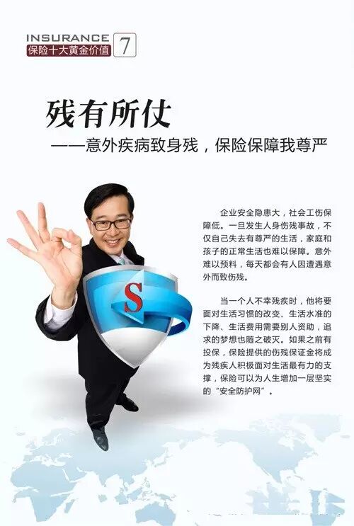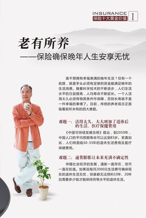保险有以下十大黄金价值:病有所医、壮有所倚、幼有所护、亲有所奉、残有所仗、老有所养、钱有所积、产有所保、财有所承、爱有所继。
