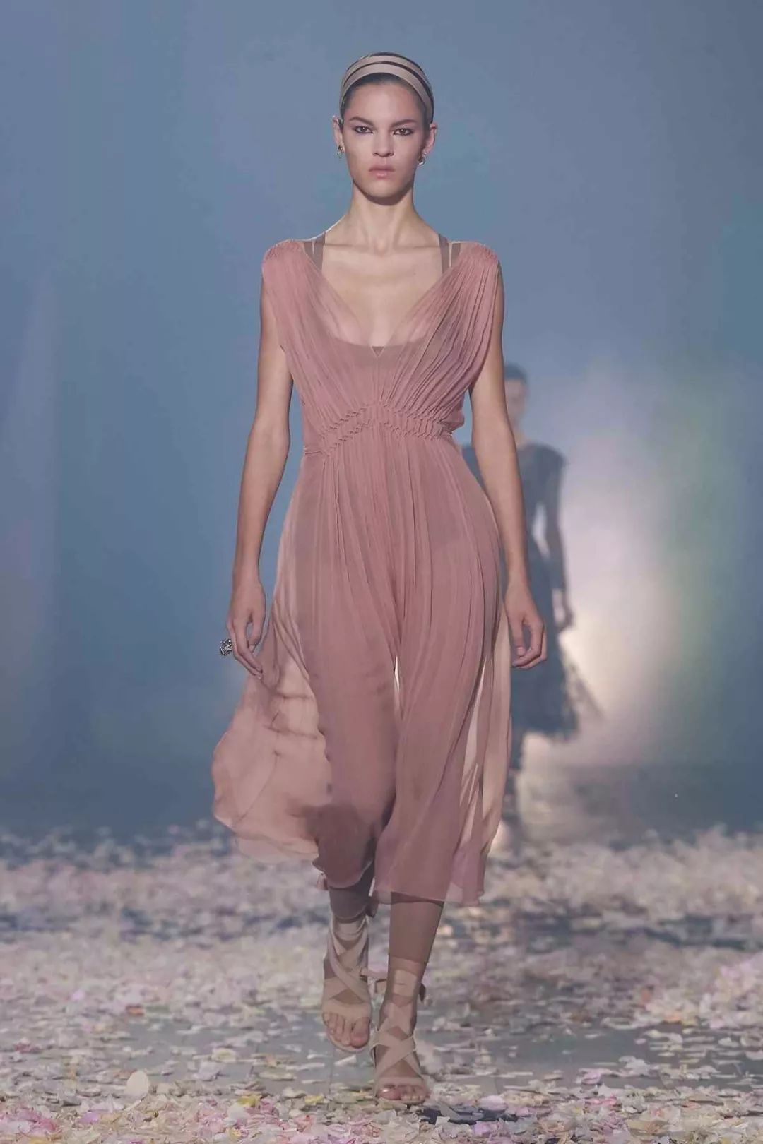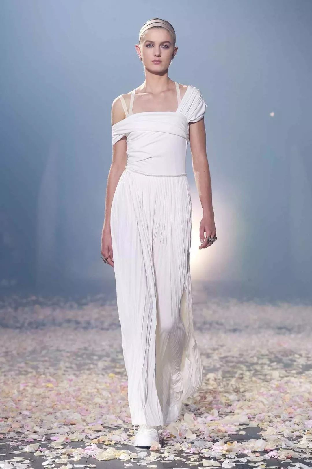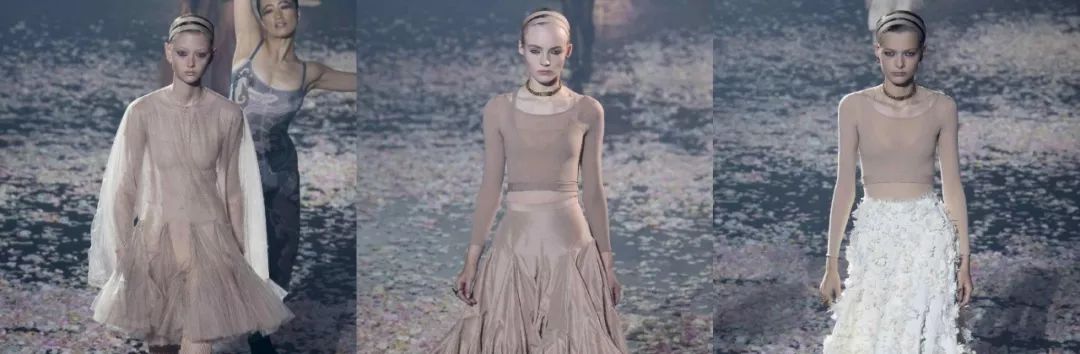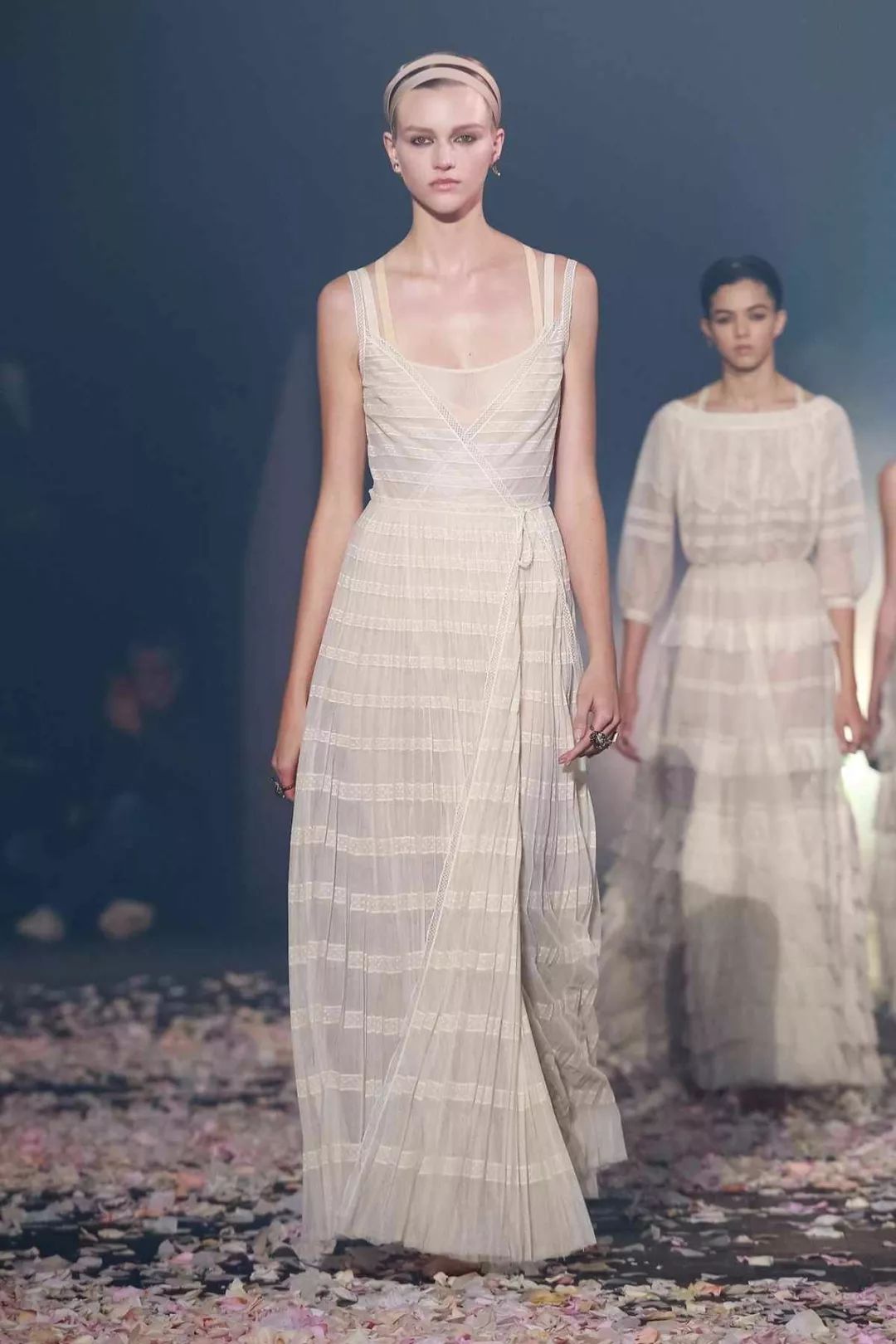 Dior整场秀大部分成衣的材质选择了半透的薄纱高级的温柔充斥整个秀场每款的设计却又大不相同,其中也蕴含心机。