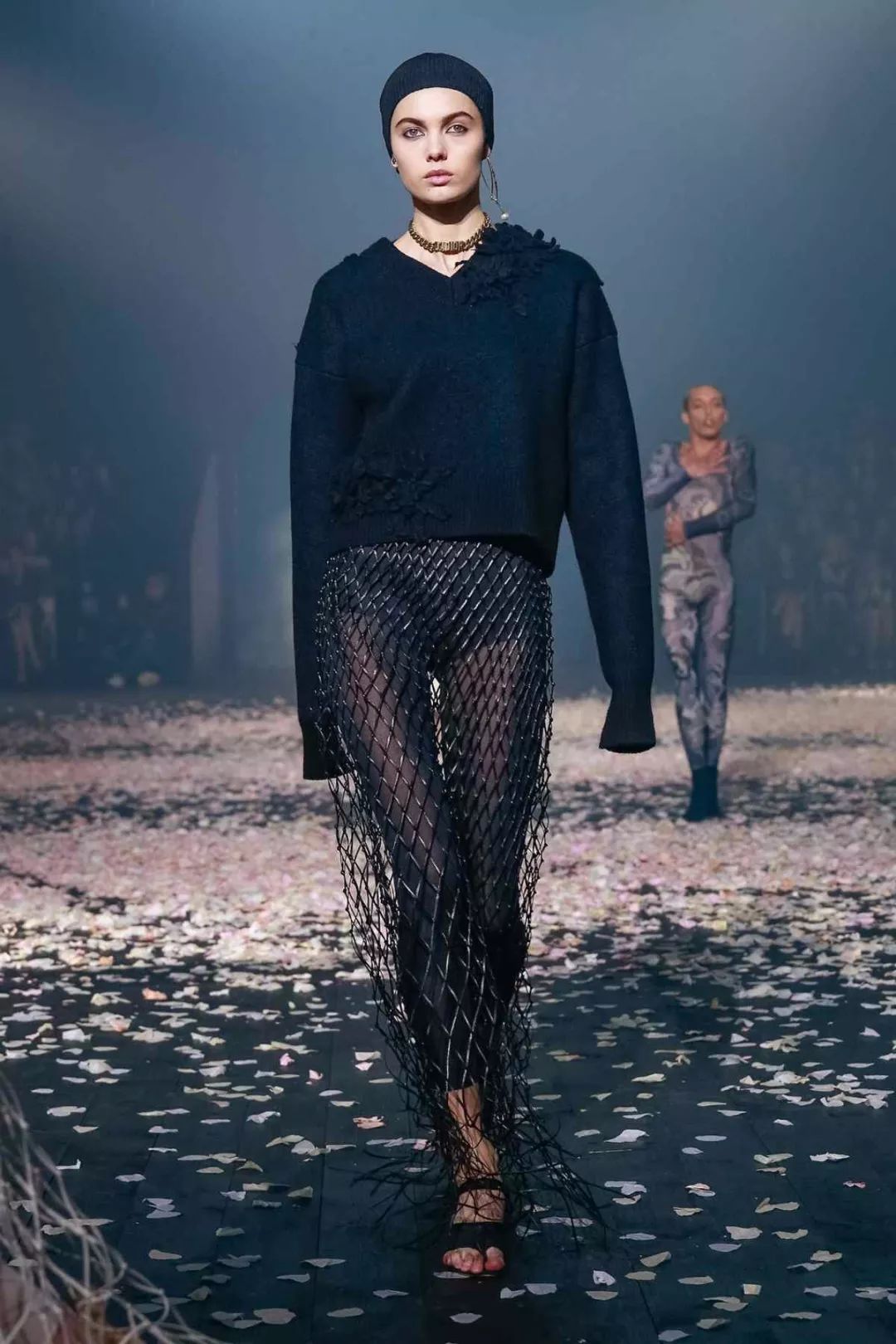 Dior这场秀所有的西装里面的打底衫或打底裤均有渔网元素 让人刚感受到西服的沉稳时,又突然看到了渔网给予的神秘