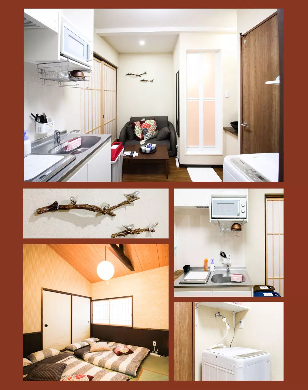【枫】和【樱】20平,【梅】和【莲】25平套内面积,一室一厅,开放式厨房,独立卫生间,独立浴室,完全不用担心会被打扰,享受私密的悠长假期。客厅有一张沙发床,可睡觉,也可以休闲娱乐,但是不能深夜开party。适合住4个人,可加一个沙发床,但需要提前说明,加住需支付每日1000日元。