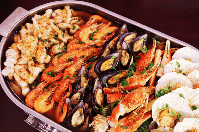 更有重量级的海鲜大咖登场,雪蟹腿、熟草虾、青口贝、扇贝等多种生猛海鲜齐聚一堂,酱汁浓郁,肉质饱满弹牙,滋味鲜甜诱人~~