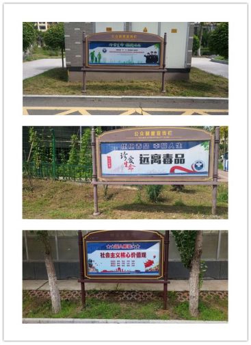 对构建和谐社会、珍爱生命、社会主义核心价值观、文明养犬、卫生制度等内容在公众制度栏中进行宣传。