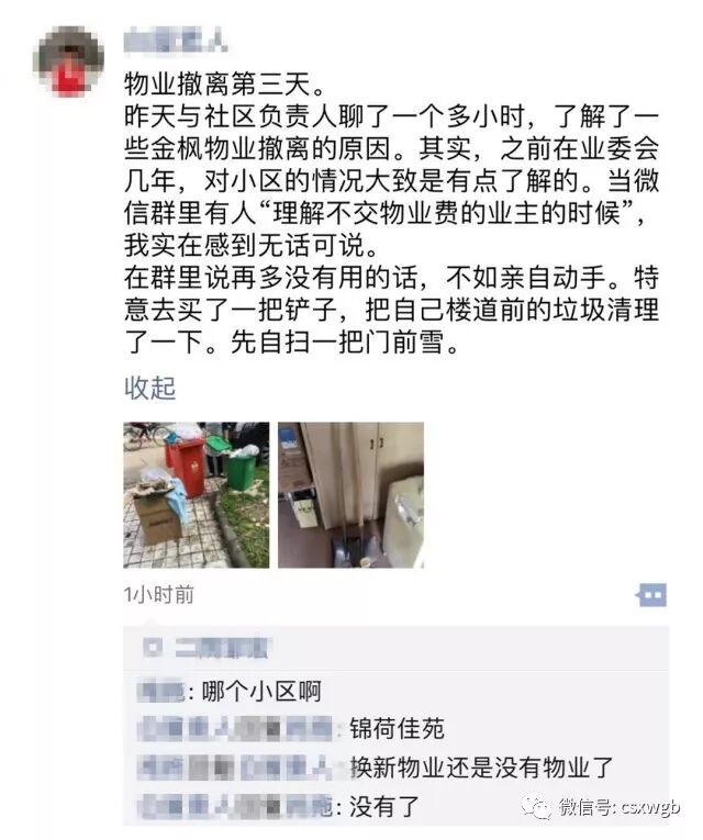 没有人管了,垃圾堆得到处都是,这样不行的。脏死了呀。环境好大家舒服呀,以前搞得干干净净的。他们现在为什么呢,物业没有这么多资金,收不到费。