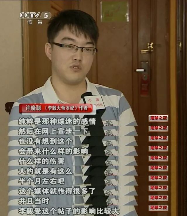 写《李毅大帝本纪》的始作俑者接受采访时说:纯粹是在网上宣泄一下球迷的感情,没想到会带来什么样的伤害。