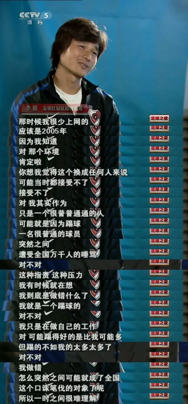直到退役后,李毅上了央视《足球之夜》的节目,他才第一次正面回应长达7年的网络黑。