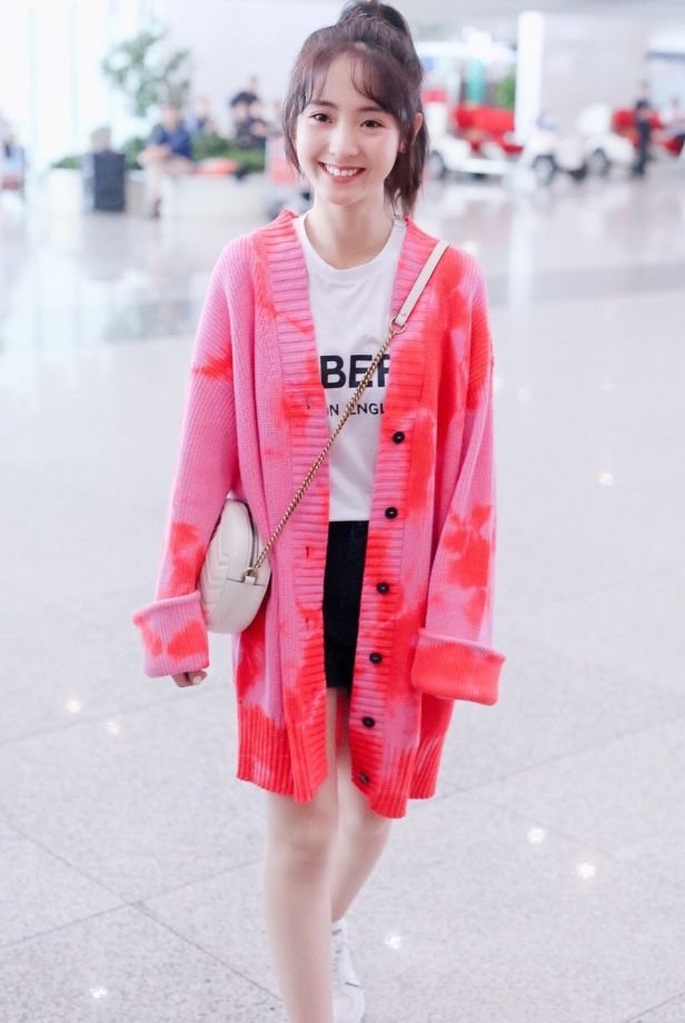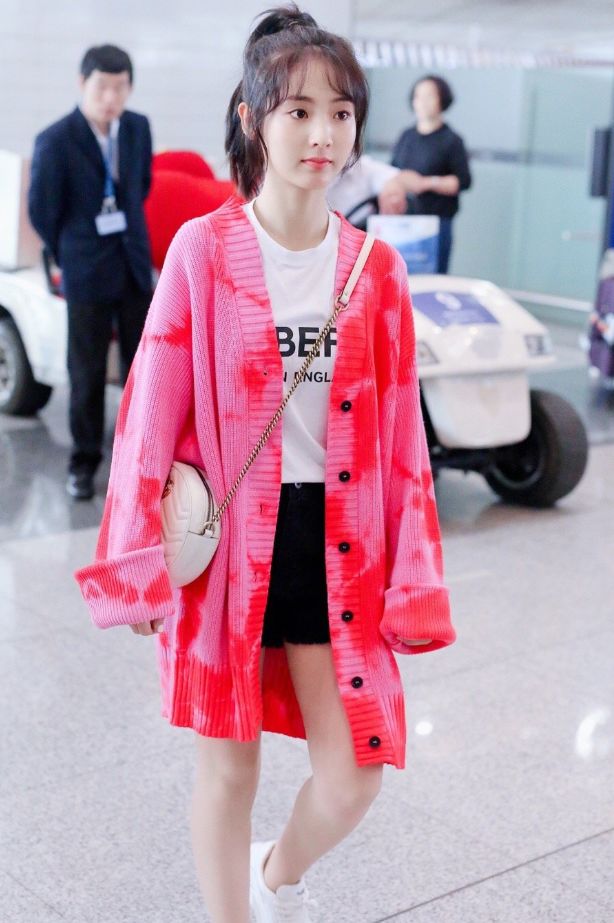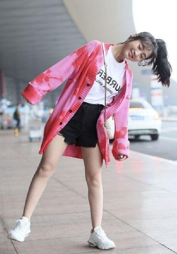 邢菲这种少女风的穿搭也是真的很减龄了,嫩粉是针织外套,看起来很是时髦,长款的设计非常的适合个子娇小的女孩子,再看看她内搭的短装,T恤和短裤的搭配也是很适合这件少女系的外套哦~
