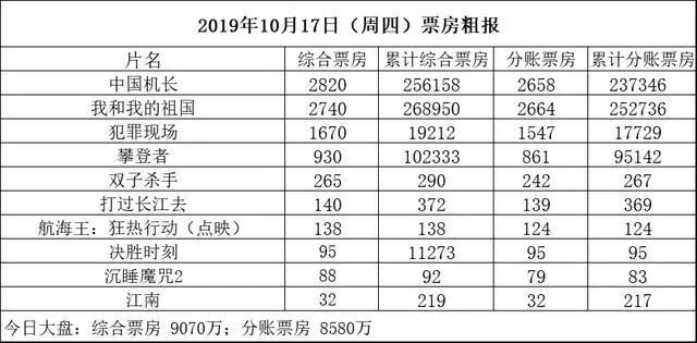 今日票房《中国机长》2820万夺冠,《我和我的祖国》累计近27亿