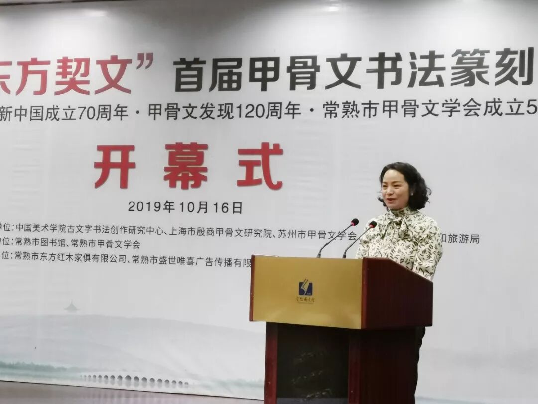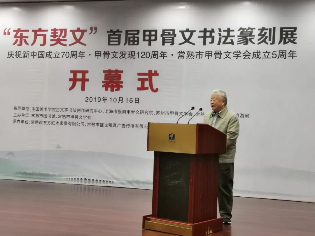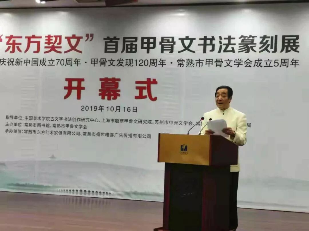 2019年10月16日,“东方契文”首届甲骨文书法篆刻展在常熟图书馆开幕并举办讲座,本次展览以宣传习近平新时代中国特色社会主义思想、新中国成立70周年所取得伟大成就和庆祝甲骨文发现120周年为主题。