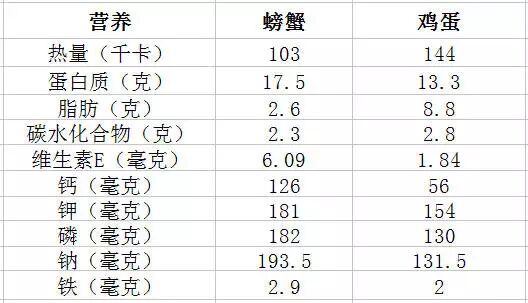 除了美味,蟹的营养也是极其丰富的。可以与我们日常吃的鸡蛋比一比,所含营养一目了然。