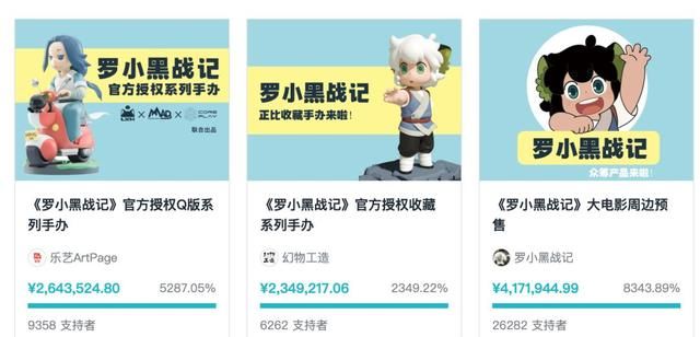 虽然其他两个手办众筹项目还没结束,但完成率也远超原计划,筹集金额都超过了200万元。