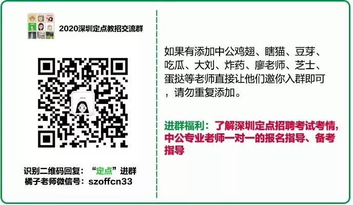 添加鸭黑老师微信号(szoffcn35),备注:定点,进2020届定点考编微信交流群。及时了解深圳定点公告详情