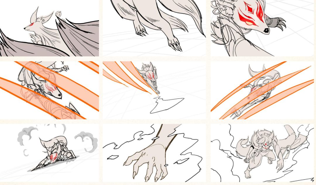 《阴阳师》(小天狗,面灵气,鬼切,白藏主)出场动画分镜头。