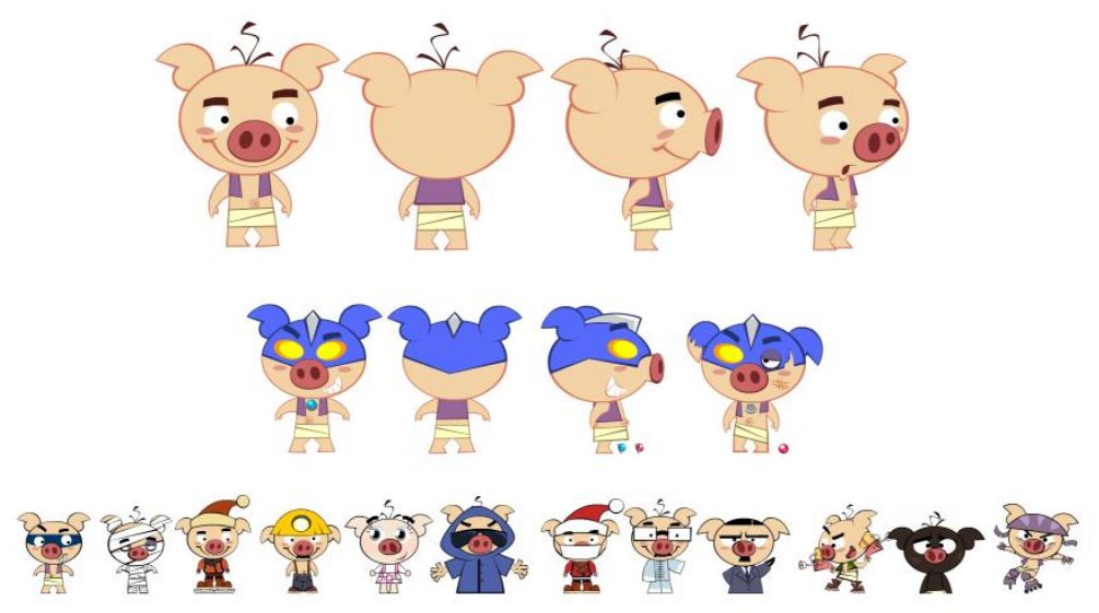 法国国家电视台52集系列动画《兔子帕西的一家》设计稿的绘制。
