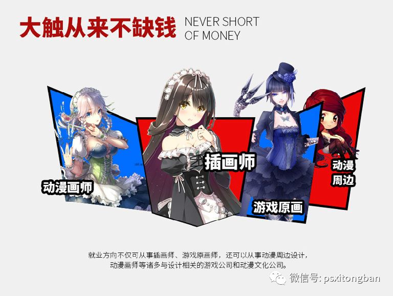 当然是使用我们photoshop来画出来。学会这项技术可以从事什么工作赚钱呢?可以看下这幅图。
