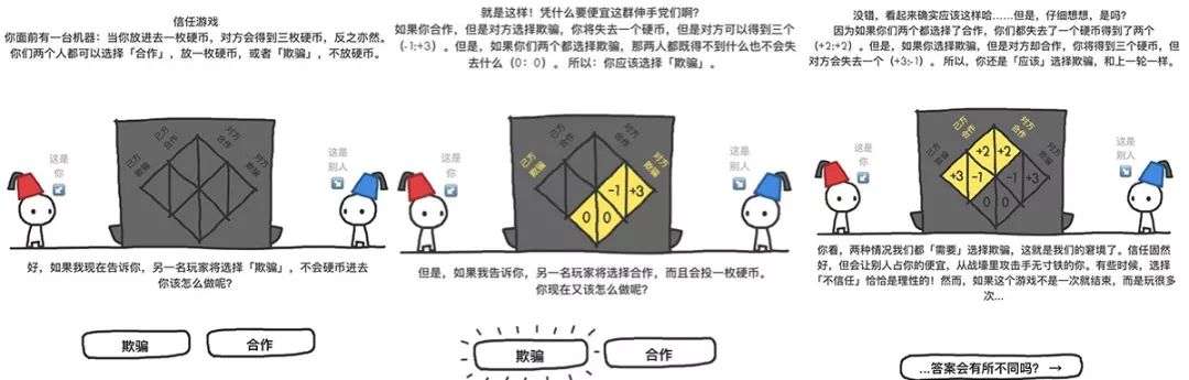 这真的是款教做人的游戏。游戏讲的是一个关于「信任」的话题,由此引出一个「博弈」小游戏。