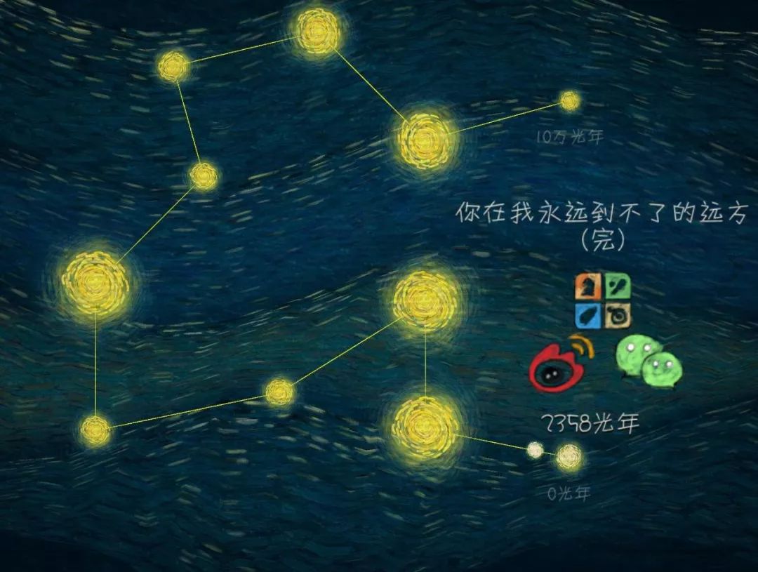 在 这个游戏中,整体画风都是采用画家梵高的代表作。以淡蓝色为背景的主色调加以金色线条相融合,给人一种很神秘的感觉。在这茫茫星空中我们作为其中一颗星,要努力飞向属于自己的那颗星。
