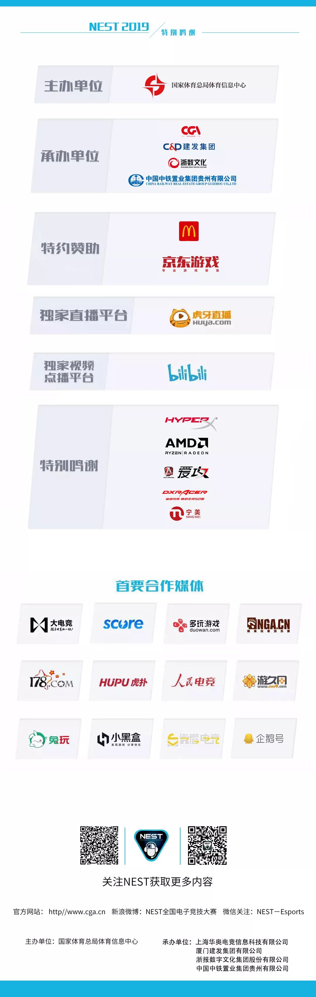 2019年,NEST继续携手虎牙直播,作为国内第一个上市的游戏直播平台,不仅拥有大量垂直电竞用户,雄厚的主播资源,同时拥有国内最尖端的视频直播技术,虎牙直播已然成为用户观赏电竞赛事的最佳首选。NEST全国电子竞技大赛作为目前国内顶级的第三方赛事,在未来三年内与虎牙直播达成独家战略合作,为广大电竞爱好者呈现更多精彩纷呈的电竞赛事内容。同时,大家可以通过虎牙直播多种多样的互动方式,参与到比赛中来进行互动交流获得海量的精美礼品。