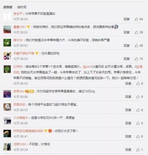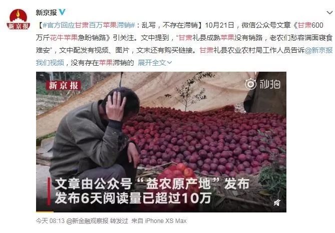 昨天早上,微博热搜榜上罕见的出现一则#官方回应甘肃百万苹果滞销#的热搜,官方回应:乱写,不存在滞销。