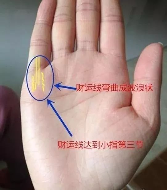 2、钱弯了人的一生是苦在手里的,小指的根叫水银山,这里的竖线叫钱线。财富线是资金的一个重要象征运气是好是坏,如果资金手中的一条线是直的,坚强,有些人更深刻的直线,代表好运,钱男人这只手将成为一个有钱的男人,有些人常常混乱的弯曲,这种人是属于业务,没有多少进步,存款只持续了几个人。