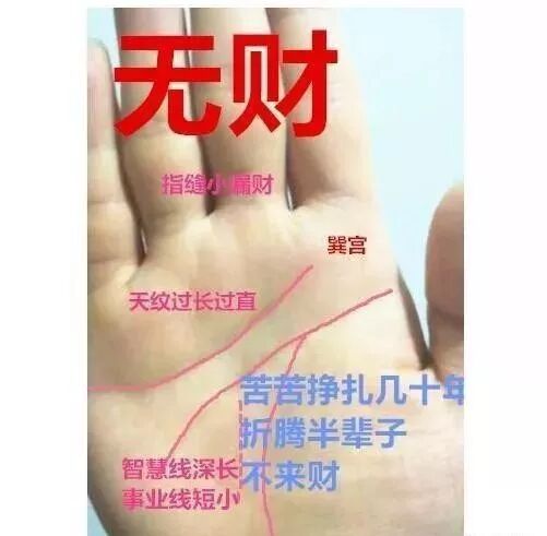 薄而坚硬的棕榈瘦1,手掌平的,没有肉,和直的手掌,手掌中间非常平坦,没有凹陷,没有钱在这样的一个人的生活,也不能胜任繁重的工作,加上金融运气差,生活是非常困难的,也只能维持温饱,挣一分钟花一分钟,很难有存款。