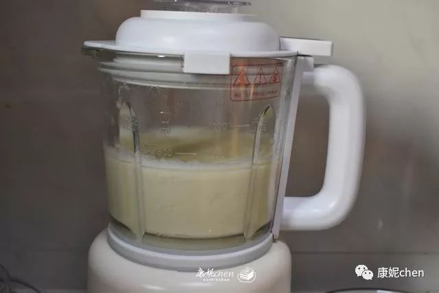 4 破壁机工作完毕就有细腻的营养豆浆了,这次的食材没有浸泡,干黄豆、干山药和其他食材都是冲洗一下,用破壁机做成豆浆。