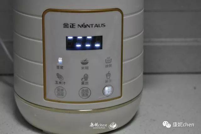 3 按下破壁机的豆浆功能键,做豆浆可以用豆浆机、破壁机,或者把这些食材煮一下用料理机搅拌。