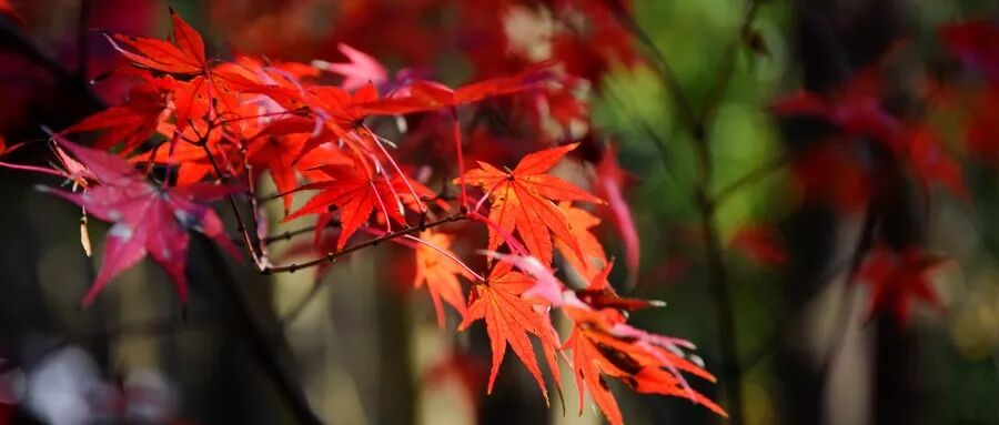 最是浓艳的秋色莫过于“霜叶红于二月花”,霜降过后,枫树、银杏树,从顶部开始,一片片的叶由绿转成鹅黄、浅黄、金黄、橙黄,由红转成浅红、嫣红、深红、紫红,开得如火如荼,漫山遍野里充满着热烈的气息。