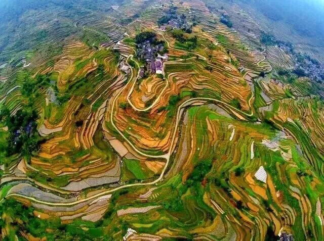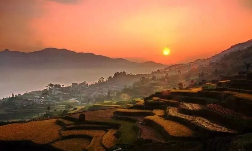 13:00开始徒步,就此走上了秋风沉醉的青石沧桑古道,两侧高大枫树连绵。俯瞰下去,空旷的梯田包围古老的村落,让人仿佛来到元阳龙脊。我们边走边拍一路有亭台古桥休息。差不多时间咱就回到村子里。