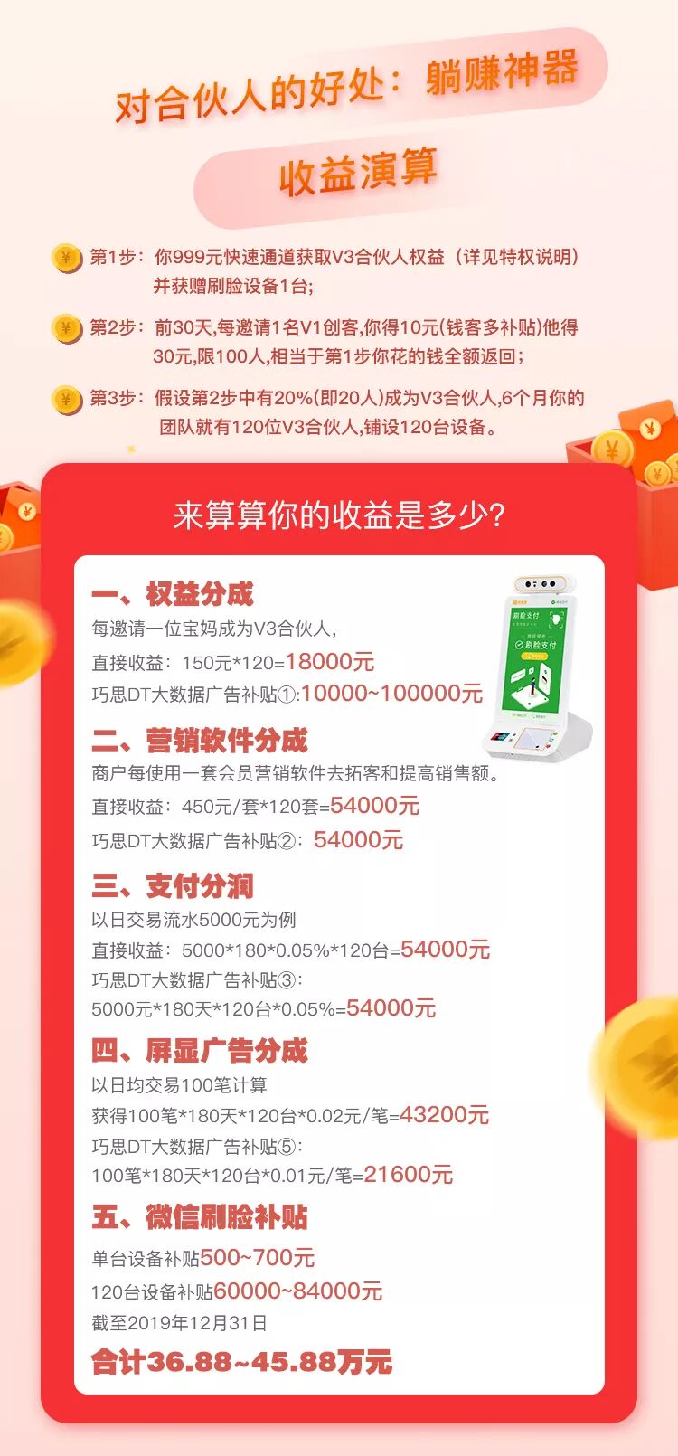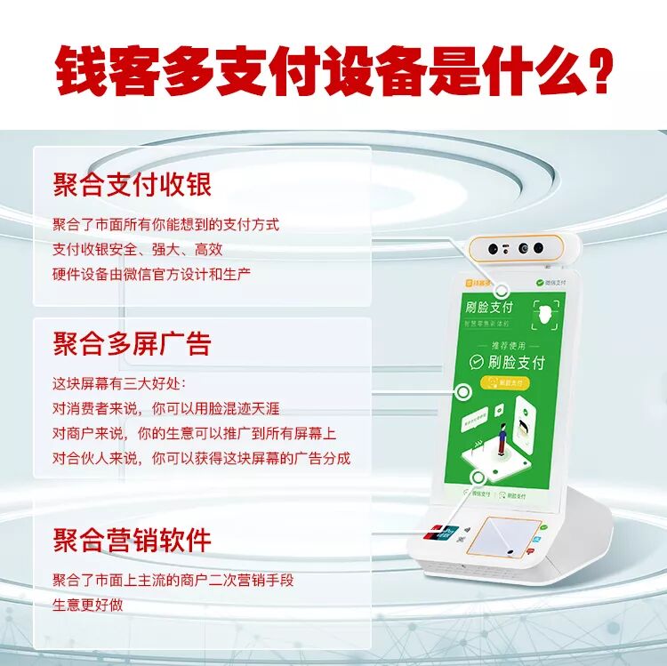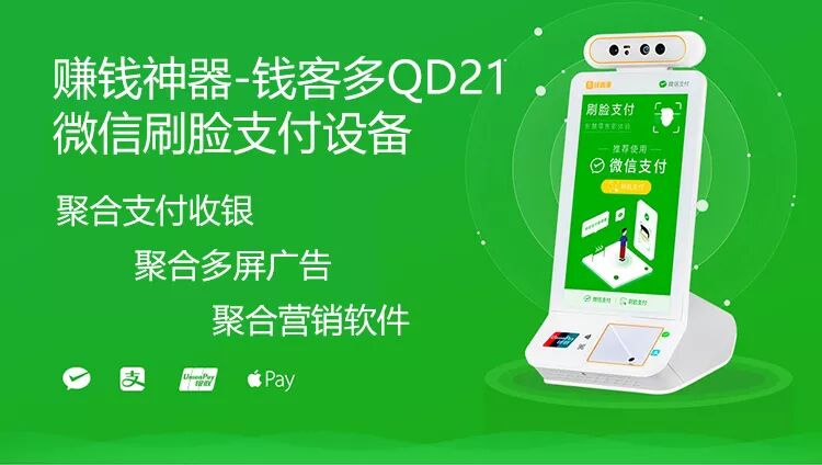 微信刷脸支付代理加盟钱客多QD21招商合作+聚合收银+聚合多屏广告+聚合营销软件 躺赚神器