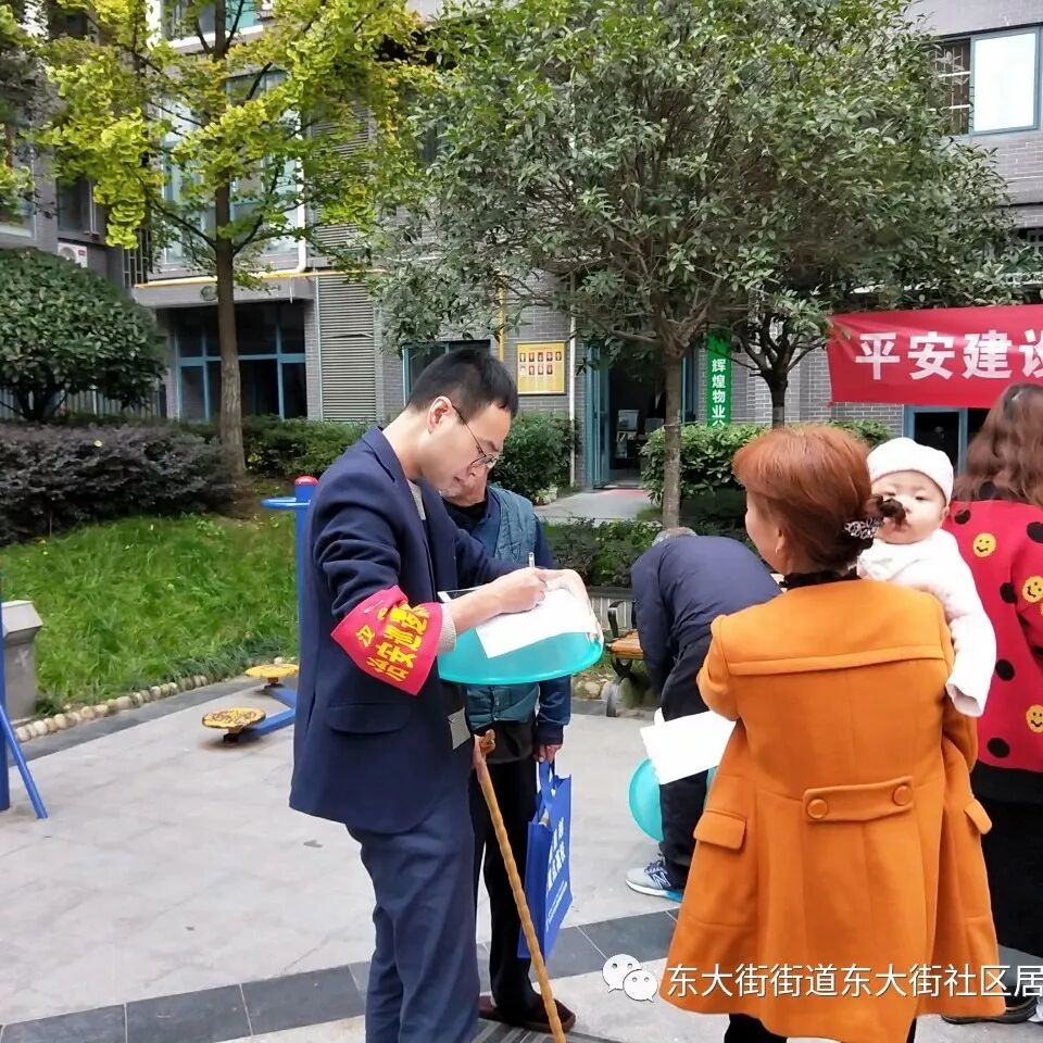 为深入推进平安建设工作、加大平安建设宣传工作,切实提升辖区群众对平安创建的知晓率、满意率和参与率,按照东大街办事处工作部署平安创建进小区,10月23日我社区在龙和花园组织开展 “平安三率”广宣传 平安东大共筑建志愿服务活动。