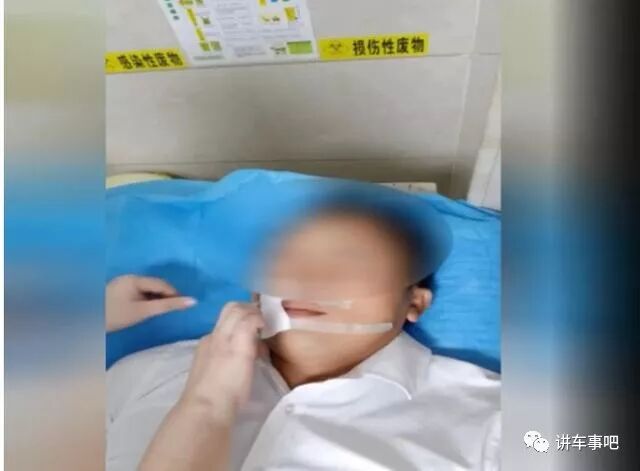 记者见到谭先生时,他的上唇附近缝贴了一块厚厚的纱布。谭先生告诉记者,10月15日上午十点多,他骑电动车赶去安吉华都小区和客户谈业务,快骑到小区外的保安岗时,意外发生了。谭先生说,就在他抬头往上看的一刹那,撞上了保安岗机动车出入口上横置的栏杆。