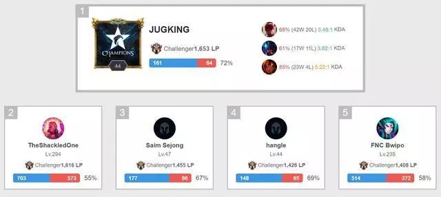 而DWG的Nuguri和showmaker在欧服的排名也是非常高,欧服第三名是Nuguri,第四名则是showmaker,不得不说,DWG的三个上中野选手确实是很猛,而CAPS则是孤零零地排在欧服第二的位置,找不到自己的队友了。