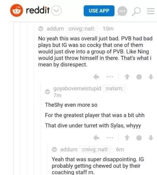 在这里我想说的是,说Ning不尊重对手,我们可以看到在前期挖掘机帮助The shy并获得了两个人头,在回家出来以后就又一次去了上路,只是这一次蹲在了眼上,这个消息被PVB获知后,PVB迅速做出抓IG下路的准备,并且刷光Ning的野区,这也就导致了Ning的节奏断裂。并不是他们所说的Ning不尊重对手。并且常看LPL比赛的网友都应该知道,IG的一个弱电就是Ning非常容易爱上头,在LPL的时候也是这样常常因为太上头而导致失误。
