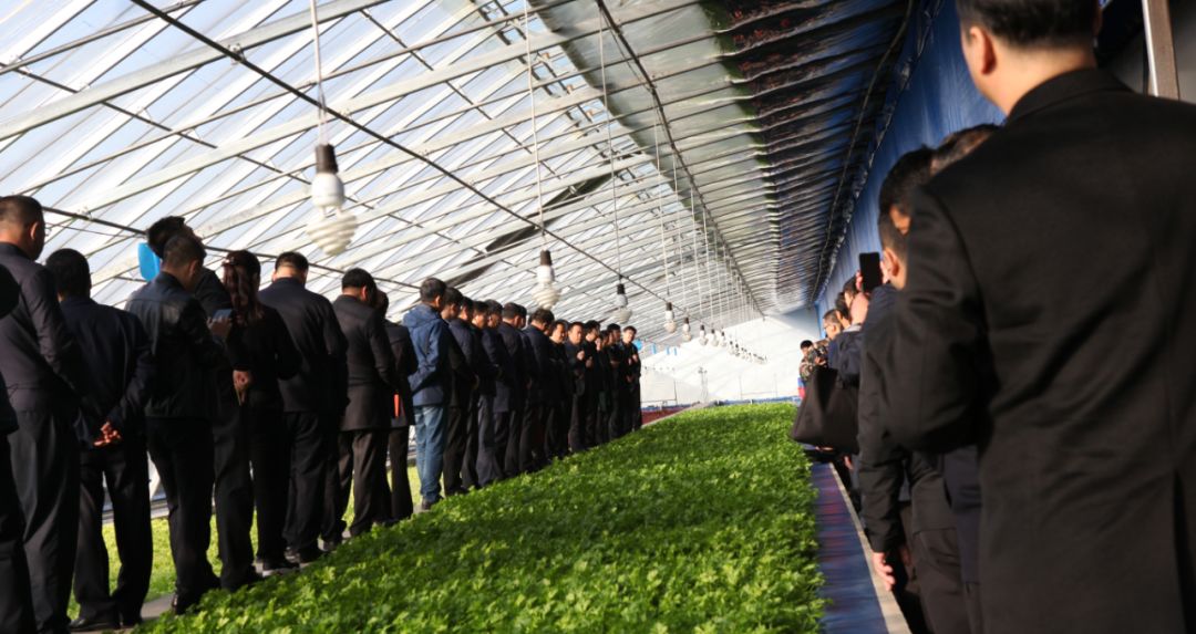 ▲全省各市地县农业主管领导参观哈尔滨永和菜业新型阳光温室水培菜及传统种植模式