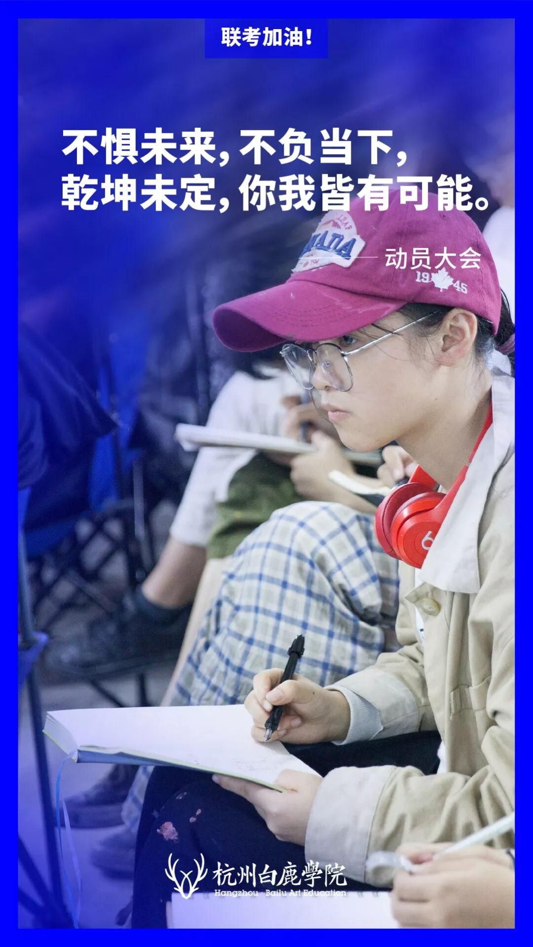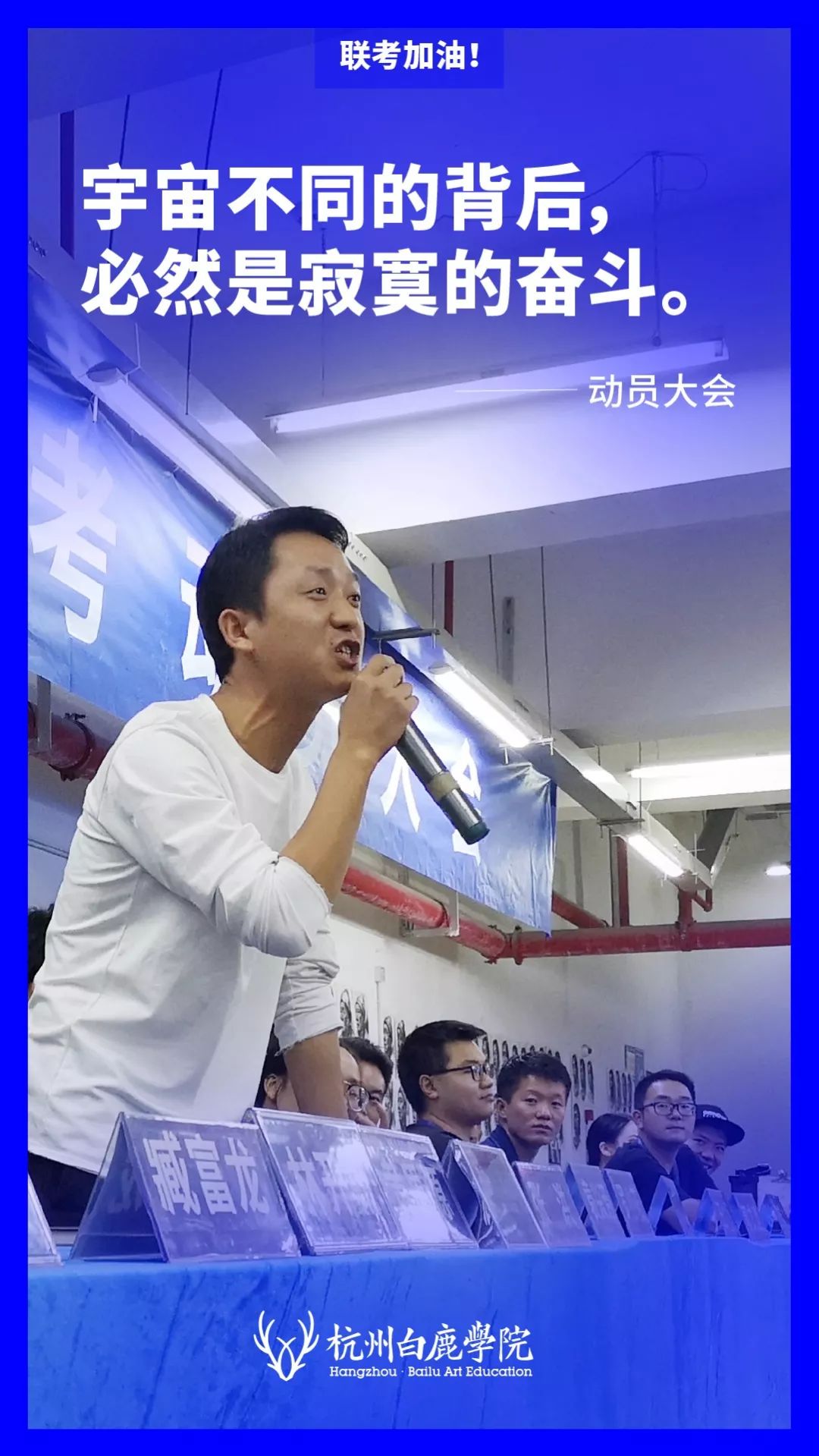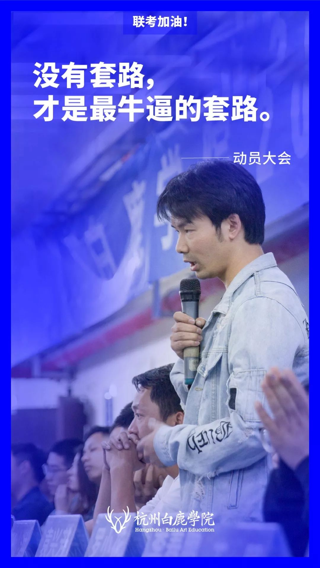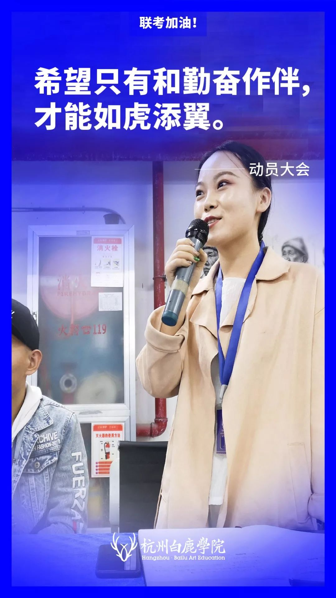 10月23日晚七点半,杭州白鹿学院举行了2020届联考动员大会。今年全国各省的联考即将在未来的35天后拉开序幕,来自全国各地的白鹿学子,也将启程,去为艺术而战,为梦想而战。这个夜晚,是一场鼓舞士气、定为破竹的誓师,也是一场全体师生的检阅。为了即将到来的首场大考,我们将会以最好的状态进入全力冲刺阶段。