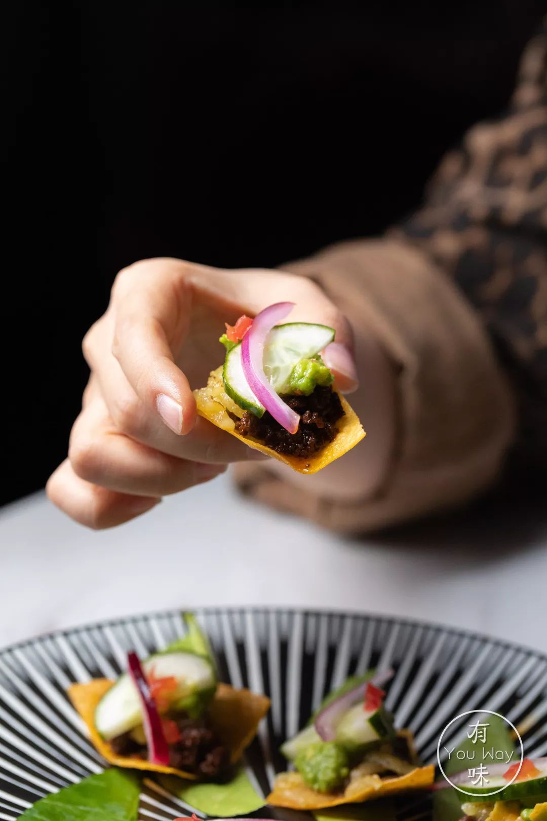 黄金的玉米饼夹杂着牛肉,一口咬下去,味道搭配相当丰富,每一片玉米片都香浓酥脆,你会发现根本停不下来。