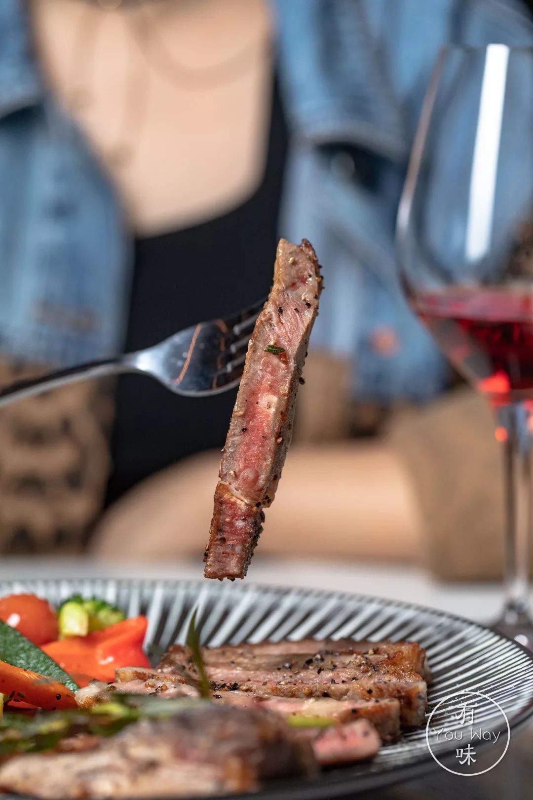 牛排表面在急火的烤制下变得焦香,内部则是粉嫩的肉色,最大限度地锁住大量的肉汁,与普通牛排相比,味道更为鲜美。