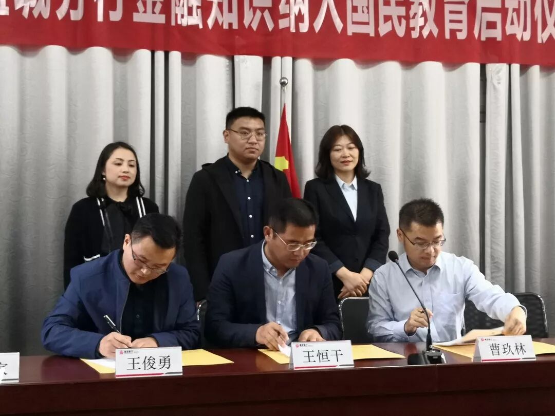 首先,我们学校和中国人民银行盐城市中心支行、南京银行盐城分行签订金融知识教育课程合作框架协议。