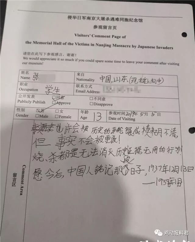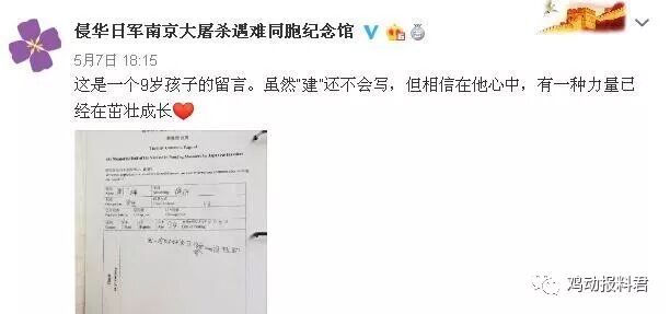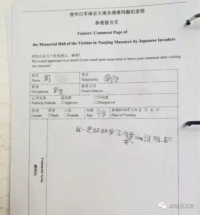 9岁男孩在南京大屠杀纪念馆的一段留言火了!网友:少年强则国强
