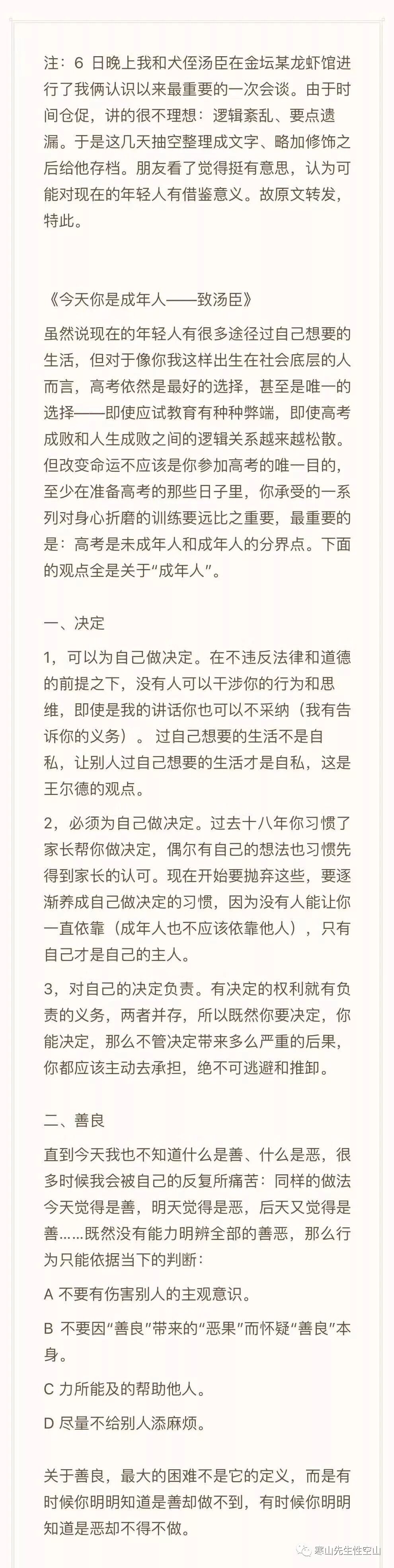 这是我,对你们所有人的一个问题。你们觉得这个世界会好吗,就像诗人只有在没吻到姑娘之前才歌颂爱情,得到之后就会歌颂自由。